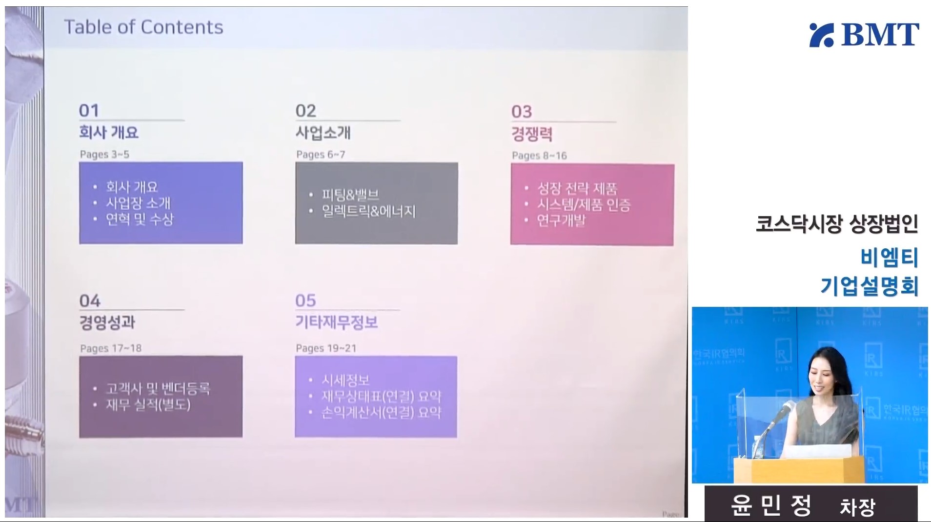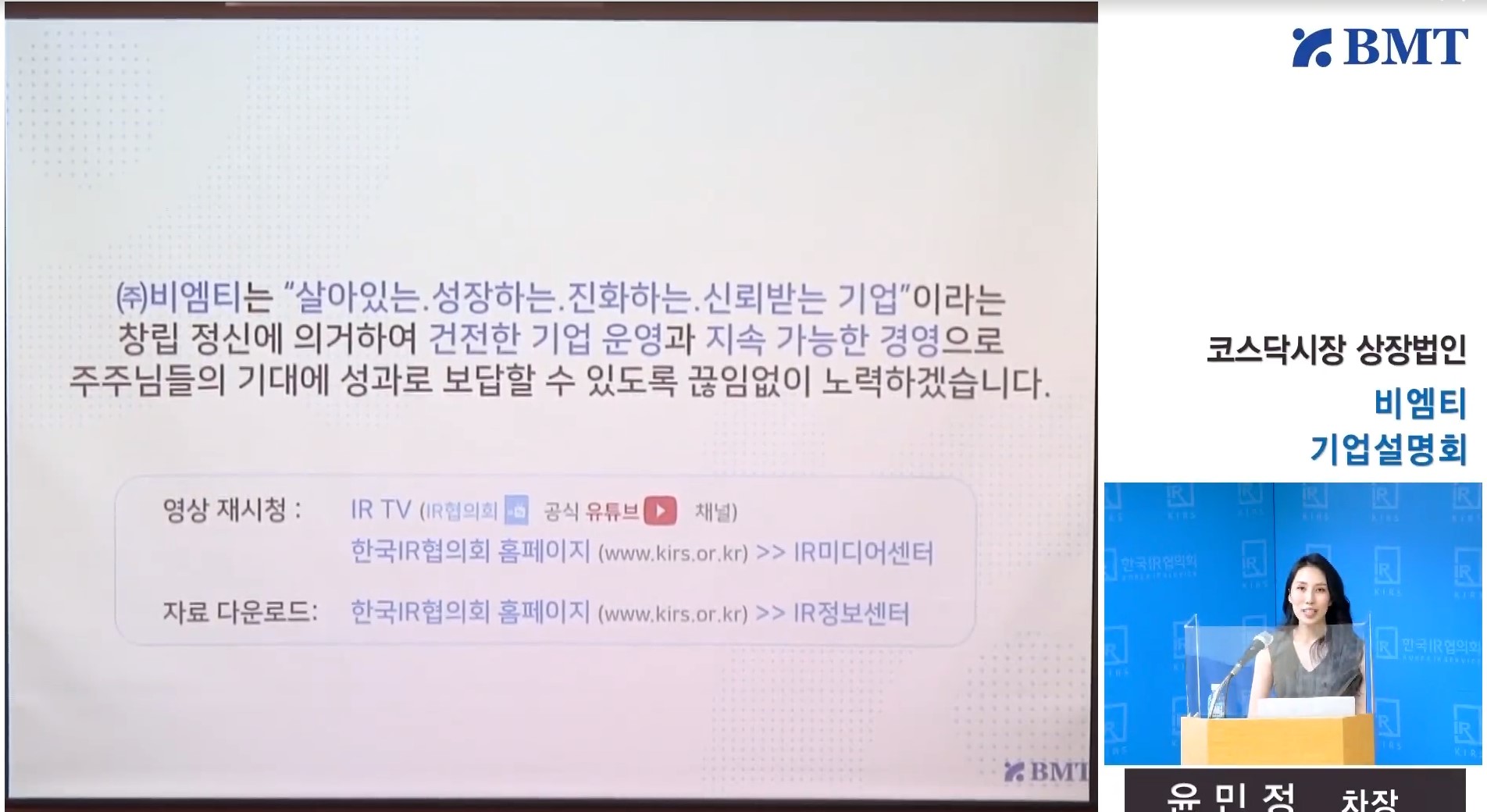 ㈜ 비엠티는 코로나19로 인해 2020/9/11 온라인으로 기업설명회를 추진하였습니다.